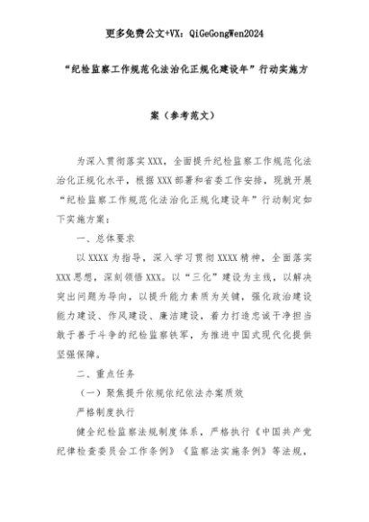 【七哥公文】2025年:“纪检监察工作规范化法治化正规化建设年” 行动实施方案(参考范文)+更多免费公文+VX:QiGeGongWen2024+更多免费公文+VX:QiGeGongWen2024