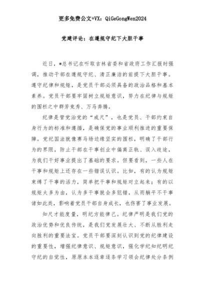 【七哥公文】2025年:党建评论:在遵规守纪下大胆干事+更多免费公文+VX:QiGeGongWen2024+更多免费公文+VX:QiGeGongWen2024