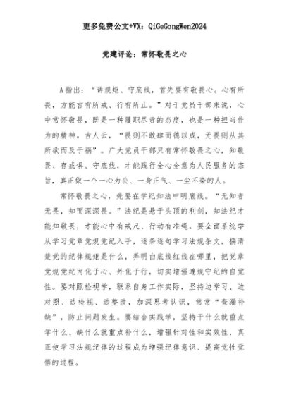 【七哥公文】2025年:党建评论:常怀敬畏之心+更多免费公文+VX:QiGeGongWen2024+更多免费公文+VX:QiGeGongWen2024