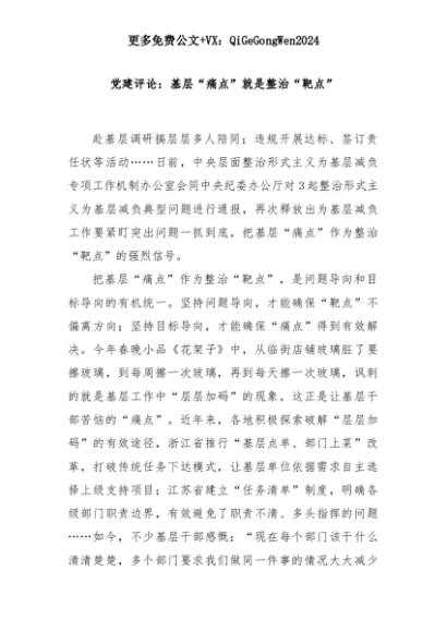 【七哥公文】2025年:党建评论:基层“痛点”就是整治“靶点”+更多免费公文+VX:QiGeGongWen2024+更多免费公文+VX:QiGeGongWen2024
