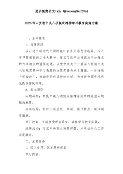 【七哥公文】2025年:2025深入贯彻中央八项规定精神学习教育实施方案+更多免费公文+VX:QiGeGongWen2024+更多免费公文+VX:QiGeGongWen2024