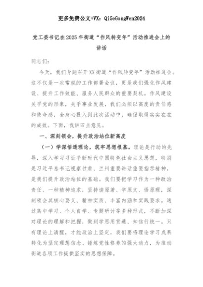 【七哥公文】2025年:党工委书记在2025年街道“作风转变年”活动推进会上的讲话+更多免费公文+VX:QiGeGongWen2024+更多免费公文+VX:QiGeGongWen2024