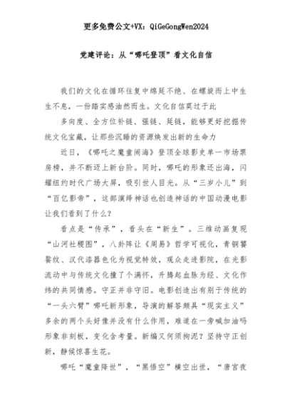 【七哥公文】2025年:党建评论:从“哪吒登顶”看文化自信+更多免费公文+VX:QiGeGongWen2024+更多免费公文+VX:QiGeGongWen2024