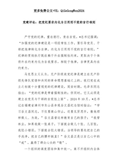 【七哥公文】2025年:党建评论:把党纪要求内化为日用而不觉的言行准则+更多免费公文+VX:QiGeGongWen2024+更多免费公文+VX:QiGeGongWen2024