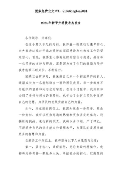 【七哥公文】2025年:2024年新晋升提拔表态发言+更多免费公文+VX:QiGeGongWen2024+更多免费公文+VX:QiGeGongWen2024