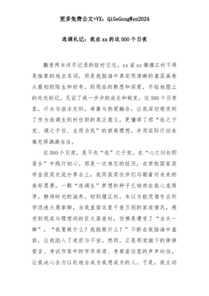 【七哥公文】2025年:选调札记:我在xx的这500个日夜+更多免费公文+VX:QiGeGongWen2024+更多免费公文+VX:QiGeGongWen2024