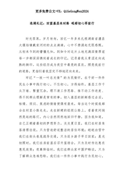 【七哥公文】2025年:选调札记:回望基层来时路 砥砺初心再前行+更多免费公文+VX:QiGeGongWen2024+更多免费公文+VX:QiGeGongWen2024