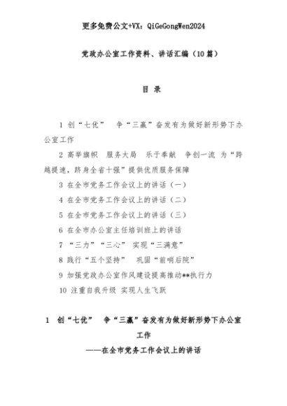 【七哥公文】2025年:(10篇)党政办公室工作资料、讲话汇编+更多免费公文+VX:QiGeGongWen2024+更多免费公文+VX:QiGeGongWen2024