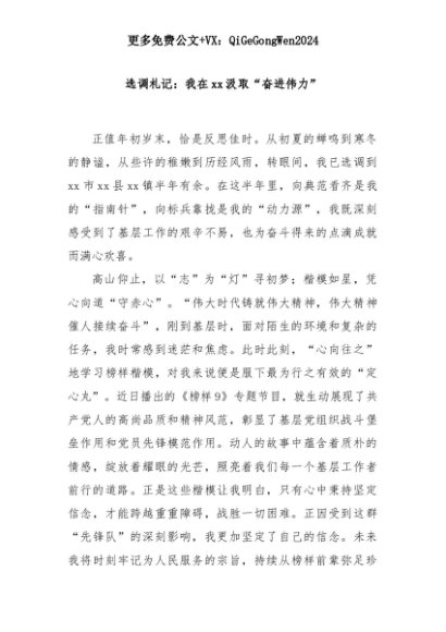【七哥公文】2025年:选调札记:我在xx汲取“奋进伟力”+更多免费公文+VX:QiGeGongWen2024+更多免费公文+VX:QiGeGongWen2024