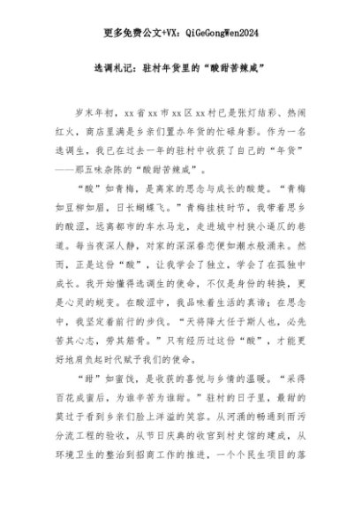 【七哥公文】2025年:选调札记:驻村年货里的“酸甜苦辣咸”+更多免费公文+VX:QiGeGongWen2024+更多免费公文+VX:QiGeGongWen2024