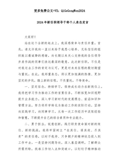 【七哥公文】2025年:2024年新任职领导干部个人表态发言+更多免费公文+VX:QiGeGongWen2024+更多免费公文+VX:QiGeGongWen2024