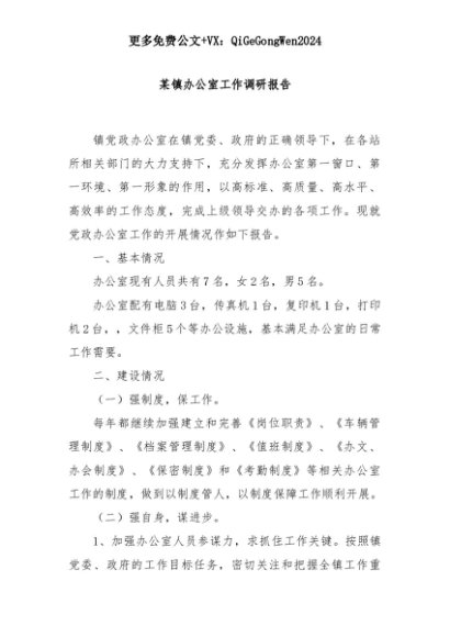 【七哥公文】2025年:某镇办公室工作调研报告+更多免费公文+VX:QiGeGongWen2024+更多免费公文+VX:QiGeGongWen2024