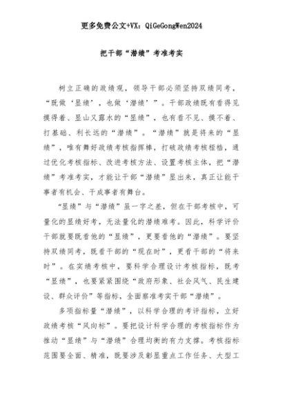 【七哥公文】2025年:把干部“潜绩”考准考实+更多免费公文+VX:QiGeGongWen2024+更多免费公文+VX:QiGeGongWen2024