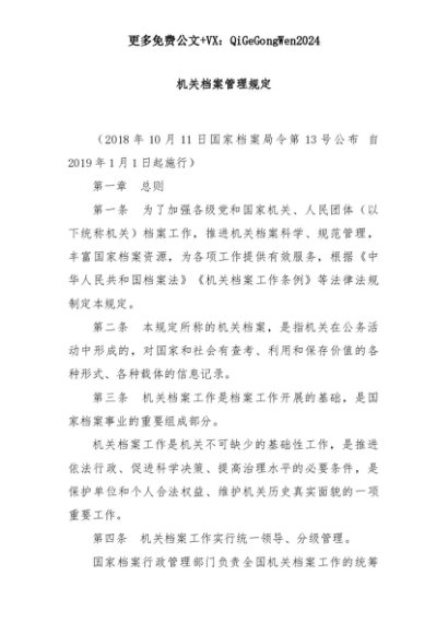 【七哥公文】2025年:机关档案管理规定+更多免费公文+VX:QiGeGongWen2024+更多免费公文+VX:QiGeGongWen2024