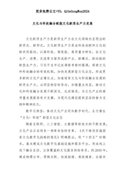 【七哥公文】2025年:文化与科技融合赋能文化新质生产力发展+更多免费公文+VX:QiGeGongWen2024+更多免费公文+VX:QiGeGongWen2024