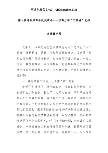 【七哥公文】2025年:深入推进作风革命效能革命——以高水平“三服务”助推高质量发展+更多免费公文+VX:QiGeGongWen2024+更多免费公文+VX:QiGeGongWen2024