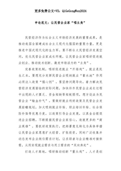 【七哥公文】2025年:申论范文:让民营企业家“唱主角”+更多免费公文+VX:QiGeGongWen2024+更多免费公文+VX:QiGeGongWen2024