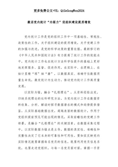 【七哥公文】2025年:激活党内统计“内驱力”促组织建设提质增效+更多免费公文+VX:QiGeGongWen2024+更多免费公文+VX:QiGeGongWen2024