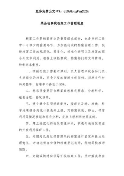 【七哥公文】2025年:某县检察院档案工作管理制度+更多免费公文+VX:QiGeGongWen2024+更多免费公文+VX:QiGeGongWen2024