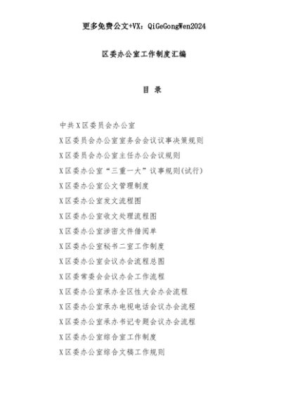 【七哥公文】2025年:区委办公室工作制度汇编+更多免费公文+VX:QiGeGongWen2024+更多免费公文+VX:QiGeGongWen2024