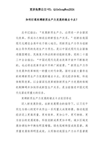 【七哥公文】2025年:如何打通束缚新质生产力发展的堵点卡点?+更多免费公文+VX:QiGeGongWen2024+更多免费公文+VX:QiGeGongWen2024