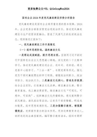【七哥公文】2025年:国有企业2024年度党风廉政建设形势分析报告+更多免费公文+VX:QiGeGongWen2024+更多免费公文+VX:QiGeGongWen2024