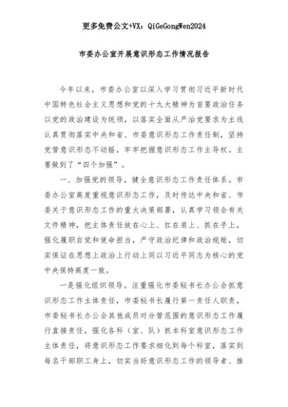 【七哥公文】2025年:市委办公室开展意识形态工作情况报告+更多免费公文+VX:QiGeGongWen2024+更多免费公文+VX:QiGeGongWen2024