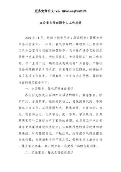 【七哥公文】2025年:办公室主任任职个人工作总结+更多免费公文+VX:QiGeGongWen2024+更多免费公文+VX:QiGeGongWen2024
