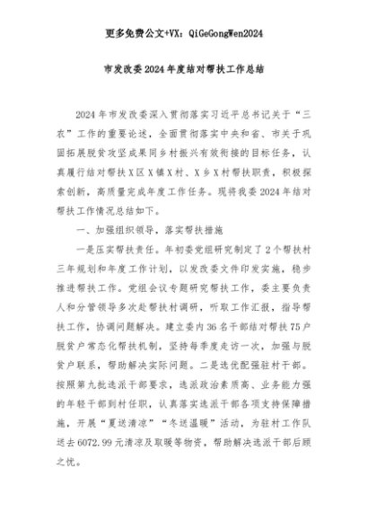 【七哥公文】2025年:市发改委2024年度结对帮扶工作总结+更多免费公文+VX:QiGeGongWen2024+更多免费公文+VX:QiGeGongWen2024