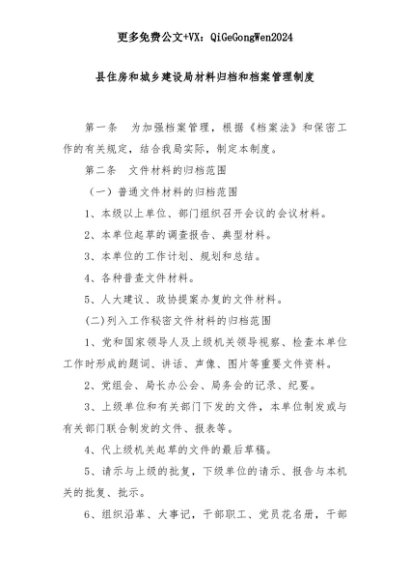 【七哥公文】2025年:县住房和城乡建设局材料归档和档案管理制度+更多免费公文+VX:QiGeGongWen2024+更多免费公文+VX:QiGeGongWen2024