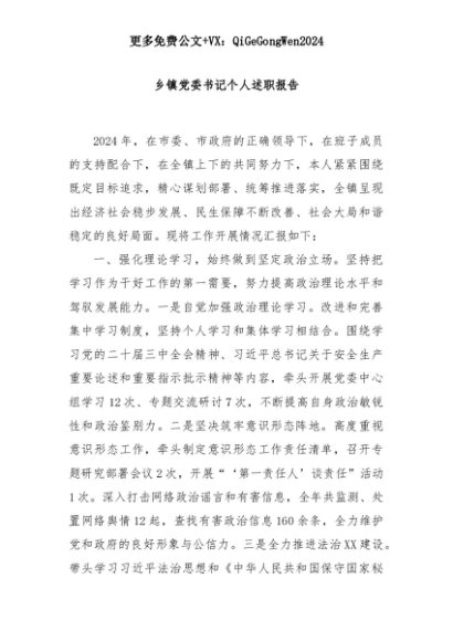 【七哥公文】2025年:乡镇党委书记个人述职报告+更多免费公文+VX:QiGeGongWen2024+更多免费公文+VX:QiGeGongWen2024