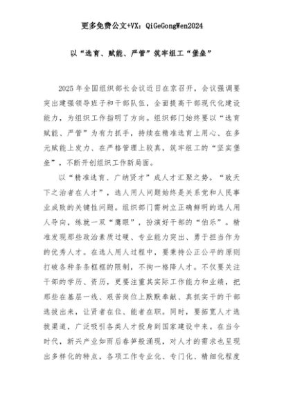 【七哥公文】2025年:以“选育、赋能、严管”筑牢组工“堡垒”+更多免费公文+VX:QiGeGongWen2024+更多免费公文+VX:QiGeGongWen2024