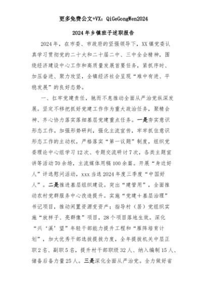 【七哥公文】2025年:2024年乡镇班子述职报告+更多免费公文+VX:QiGeGongWen2024+更多免费公文+VX:QiGeGongWen2024