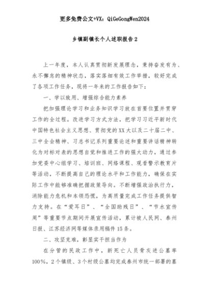 【七哥公文】2025年:乡镇副镇长个人述职报告2+更多免费公文+VX:QiGeGongWen2024+更多免费公文+VX:QiGeGongWen2024
