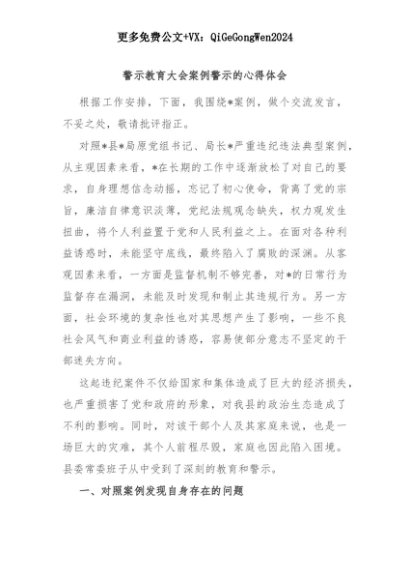 【七哥公文】2025年:警示教育大会案例警示的心得体会+更多免费公文+VX:QiGeGongWen2024+更多免费公文+VX:QiGeGongWen2024