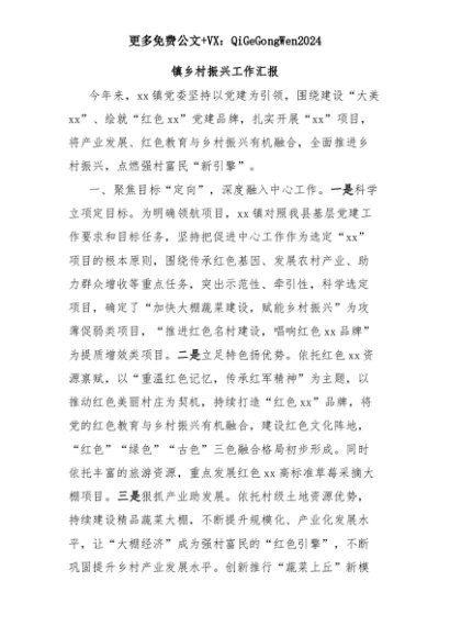 【七哥公文】2025年:镇乡村振兴工作汇报+更多免费公文+VX:QiGeGongWen2024+更多免费公文+VX:QiGeGongWen2024