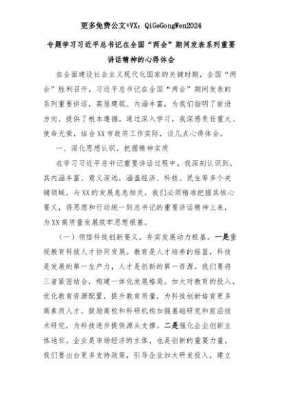 【七哥公文】2025年:专题学习习近平总书记在全国“两会”期间发表系列重要讲话精神的心得体会+更多免费公文+VX:QiGeGongWen2024+更多免费公文+VX:QiGeGongWen2024