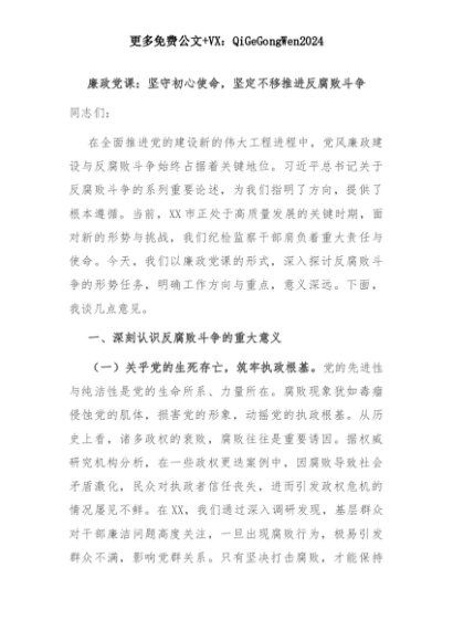 【七哥公文】2025年:廉政党课:坚守初心使命,坚定不移推进反腐败斗争+更多免费公文+VX:QiGeGongWen2024+更多免费公文+VX:QiGeGongWen2024