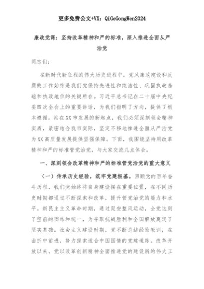 【七哥公文】2025年:廉政党课:坚持改革精神和严的标准,深入推进全面从严治党+更多免费公文+VX:QiGeGongWen2024+更多免费公文+VX:QiGeGongWen2024