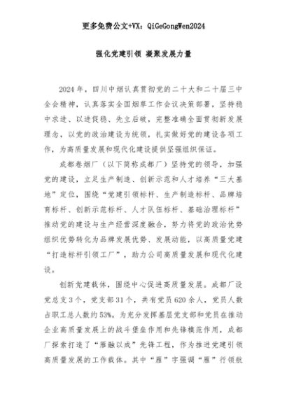 【七哥公文】2025年:强化党建引领 凝聚发展力量+更多免费公文+VX:QiGeGongWen2024+更多免费公文+VX:QiGeGongWen2024