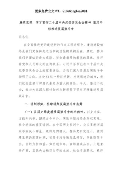 【七哥公文】2025年:廉政党课:学习贯彻二十届中央纪委四次全会精神 坚定不移推进反腐败斗争+更多免费公文+VX:QiGeGongWen2024+更多免费公文+VX:QiGeGongWen2024