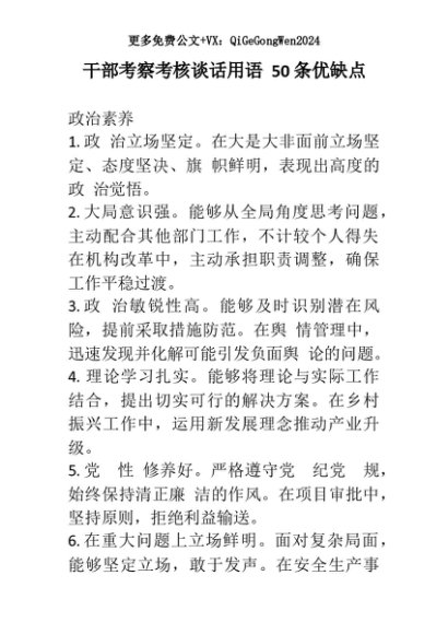 【七哥公文】2025年:干部考察考核谈话用语 50条优+更多免费公文+VX:QiGeGongWen2024+更多免费公文+VX:QiGeGongWen2024