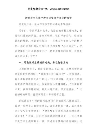 【七哥公文】2025年:教导处主任在中考百日誓师大会上的演讲+更多免费公文+VX:QiGeGongWen2024+更多免费公文+VX:QiGeGongWen2024