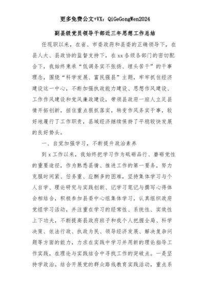 【七哥公文】2025年:副县级党员领导干部近三年思想工作总结+更多免费公文+VX:QiGeGongWen2024+更多免费公文+VX:QiGeGongWen2024