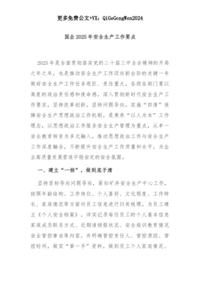 【七哥公文】2025年:国企2025年安全生产工作要点+更多免费公文+VX:QiGeGongWen2024+更多免费公文+VX:QiGeGongWen2024