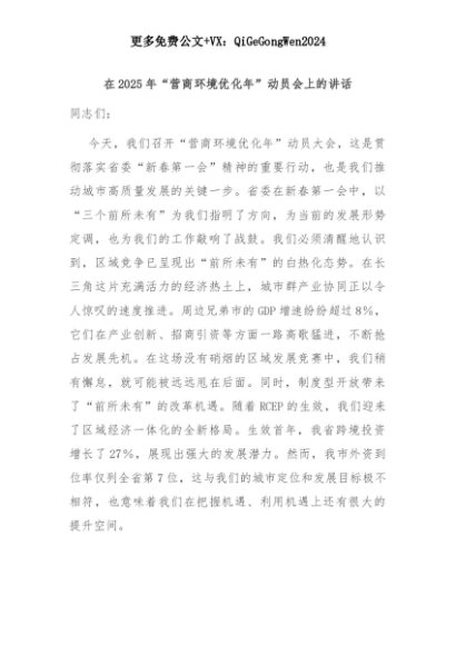【七哥公文】2025年:在2025年“营商环境优化年”动员会上的讲话+更多免费公文+VX:QiGeGongWen2024+更多免费公文+VX:QiGeGongWen2024