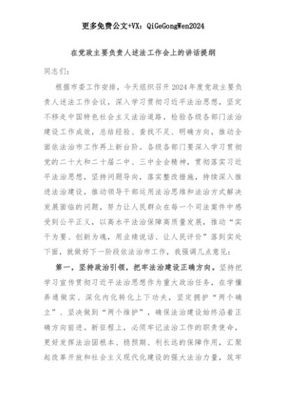 【七哥公文】2025年:在党政主要负责人述法工作会上的讲话提纲+更多免费公文+VX:QiGeGongWen2024+更多免费公文+VX:QiGeGongWen2024