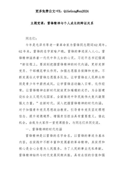 【七哥公文】2025年:主题党课:雷锋精神与个人成长的辩证关系+更多免费公文+VX:QiGeGongWen2024+更多免费公文+VX:QiGeGongWen2024