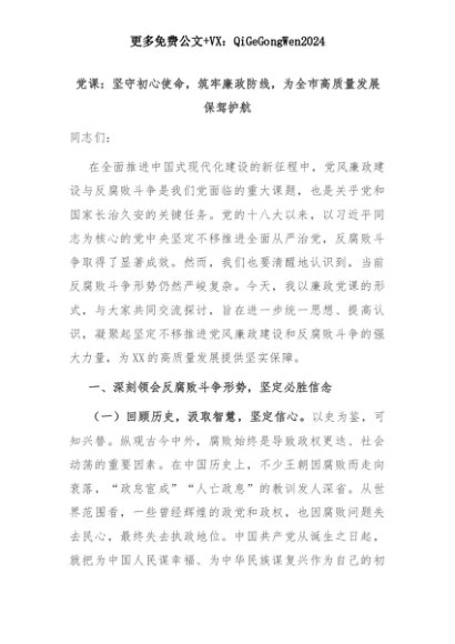 【七哥公文】2025年:党课:坚守初心使命,筑牢廉政防线,为全市高质量发展保驾护航+更多免费公文+VX:QiGeGongWen2024+更多免费公文+VX:QiGeGongWen2024
