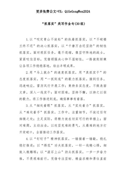 【七哥公文】2025年:(30组)“抓落实”类写作金句+更多免费公文+VX:QiGeGongWen2024+更多免费公文+VX:QiGeGongWen2024